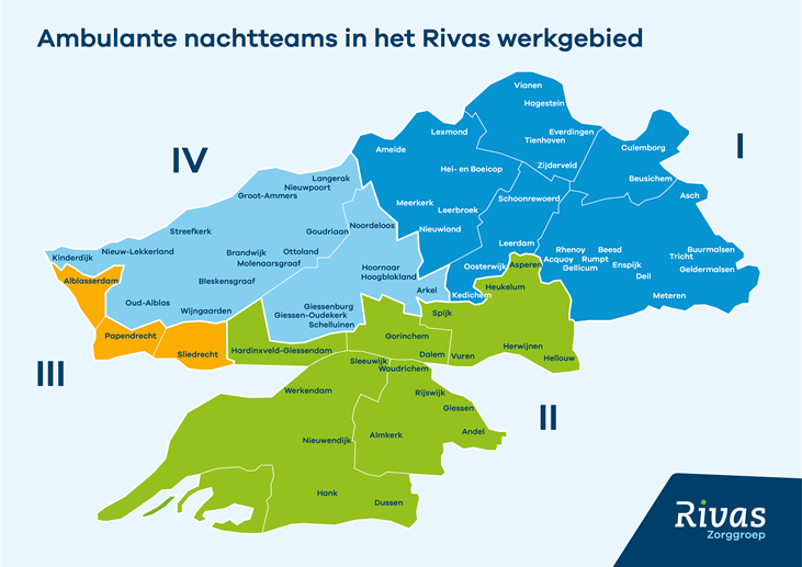 Het ambulante nachtteam van Rivas levert nachtzorg in heel het Rivas-werkgebied en voor andere zorgorganisaties. We zijn experts in het bieden van acute zorg in de nacht. We werken nauw samen met de Huisartsenpost (HAP) om snel de juiste zorg te leveren.